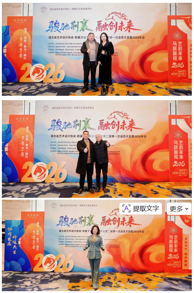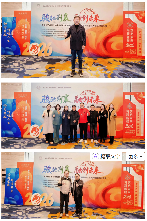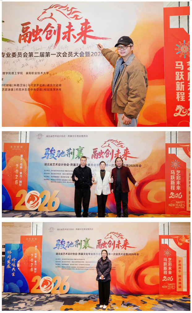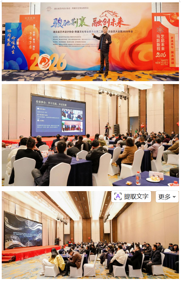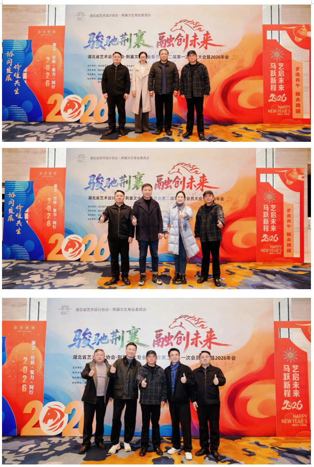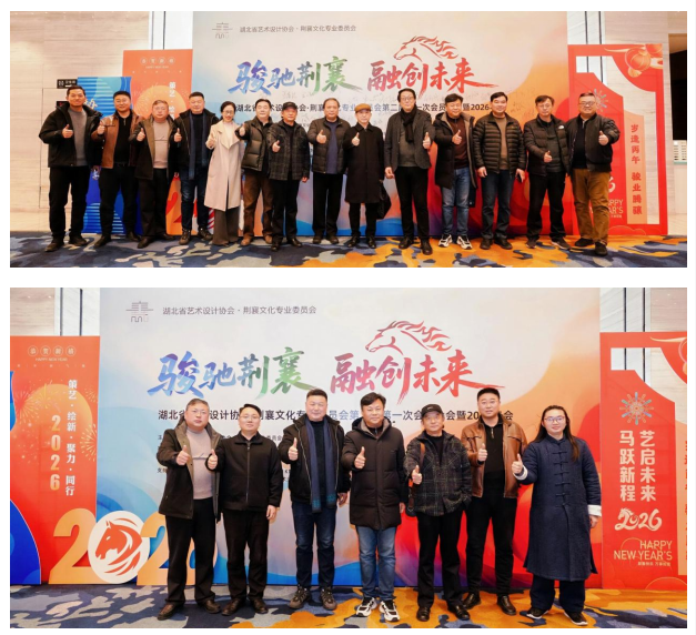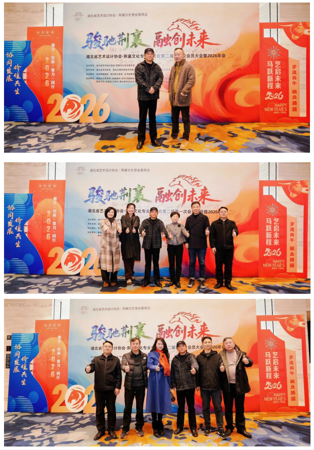 骏驰荆襄启新篇,融创未来向远方。湖北省艺术设计协会荆襄文化专业委员会第二届第一次会员大会暨2026年会的圆满举行,不仅回顾了过往五载的耕耘与收获,明确了新一年的发展方向,更搭建了一个传承荆襄文脉、推动设计创新、凝聚行业合力的优质平台,标志着荆襄文化与艺术设计融合发展迈入了新阶段、开启了新征程。